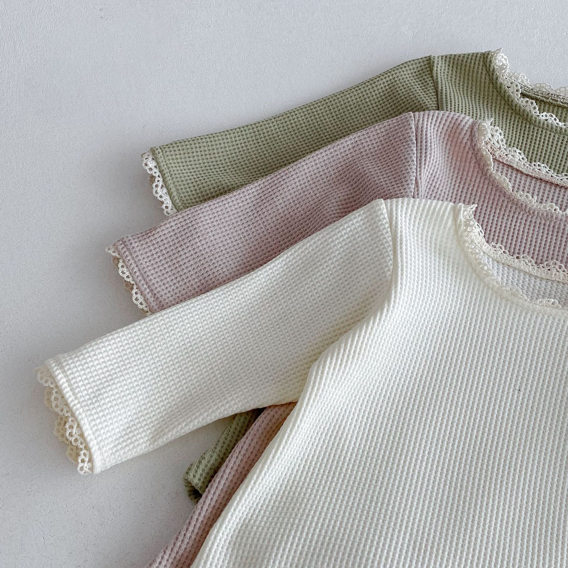 Crafted for comfort and style, this unisex baby onesie features a delicate lace trim and a textured waffle grid design that adds subtle elegance. The long sleeves provide warmth for cooler autumn days, while the matching hat completes the ensemble, ensuring your little one stays cozy and charming from head to toe.