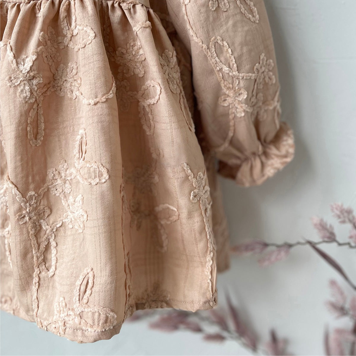 Baby Girl Solid Color Jacquard Embroidery Fashion Dress&Onesie